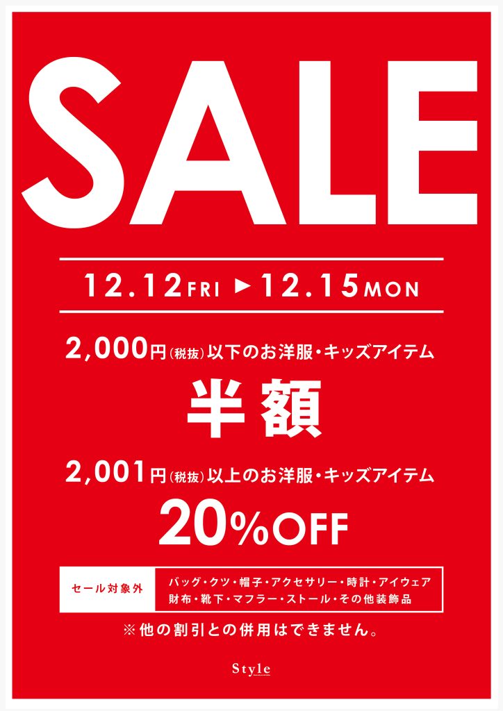 2001円以上のお洋服とキッズアイテムが20%OFF‼️